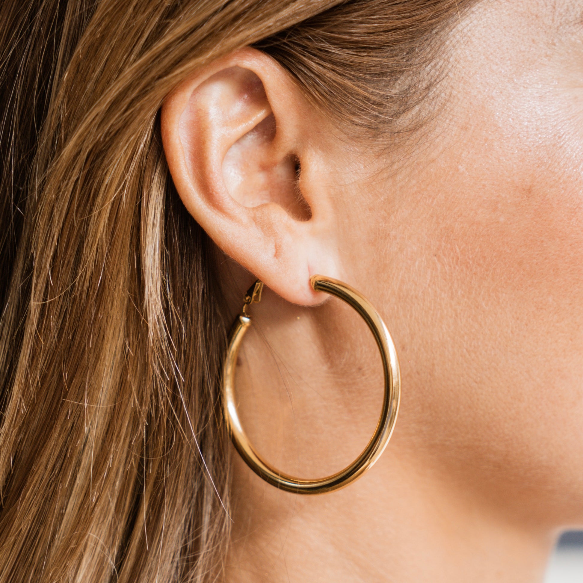 Este aro tiene 3 cosas que lo hacen PERFECTO!! La primera es que es de acero así que no sufras por su baño dorado, ya que es muy muy muy duradero. Número dos cierra genial! Siempre estarás segura de que está bien cerrado y no lo vas a perder (aunque seas de las que van en moto, hasta con el casco te los puedes poner!) y tercero son más gorditos pero no pesan! Así que te imaginarás que gustazo llevarlos todo el día sin sufrir!!